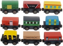 Sættet indeholder 3 lokomotiver og 9 vogne i forskellige farver, hvilket tilbyder mangfoldig sjov.