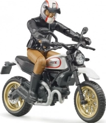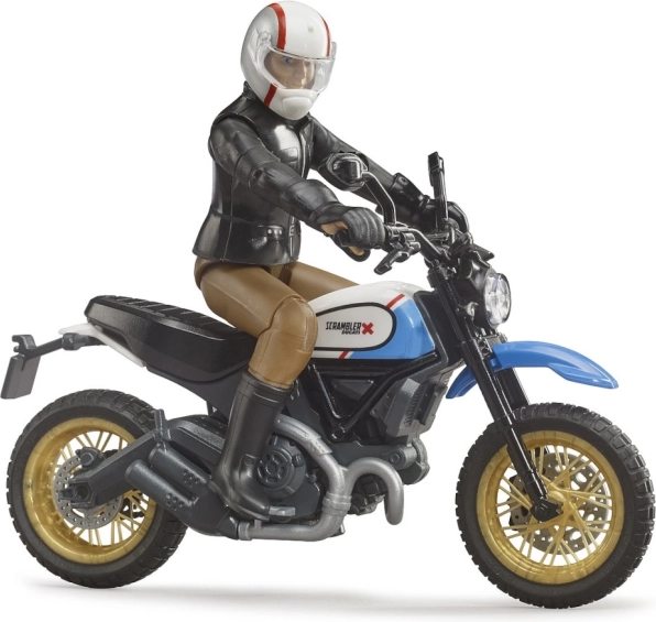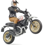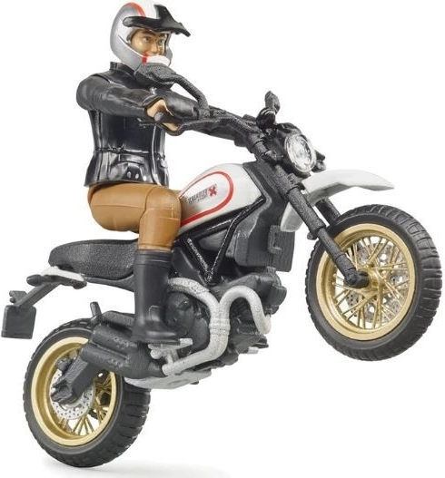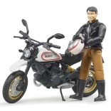 Bruders BWORLD-serie bringer en autentisk køreoplevelse. Motorcyklen Scrambler DUCATI Cafe Racer imponerer med realistiske detaljer, fra motordesignet til de gyldne fælge, og rytteren med fuldt bevægelige led muliggør dynamiske positurer og actionfyldte scenarier. Den robuste konstruktion sikrer lang levetid og sikker underholdning.