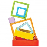 Denne variable sæt tilbyder uendelige kombinationer – uden vejledning, kun med fantasi. Børn kan lægge firkanterne efter størrelse, bygge tårne, skabe mosaikker og farverige rammer til deres kreationer og bagefter bruge dem som pynt på værelset. Massivt træ og glatte kanter sikrer et behageligt greb og lang holdbarhed.