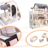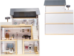 Den treetagers dukkestue på 78 cm er designet til mange timers kreativ leg. Realistiske interiørprint, trappe og åben konstruktion giver nem adgang til alle rum. Den integrerede LED-lysliste oplyser rummene smukt og skaber en hyggelig atmosfære under legen.