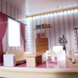 Koldt hvide LED-dioder langs loftet i rummene oplyser hele huset smukt og fremhæver interiørdetaljerne. Strømforsyning 3× AA (medfølger ikke).