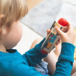 Den robuste trækonstruktion med glatte kanter er sikker for små børn og passer perfekt i små hænder og i rygsækken på farten.