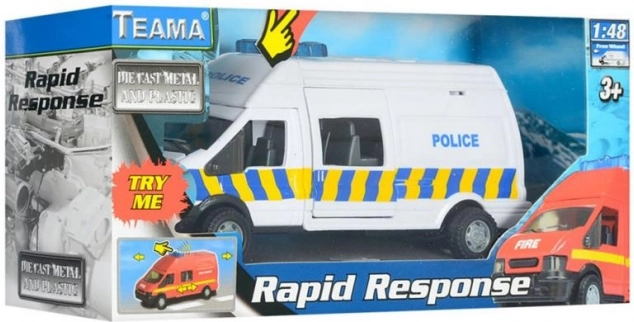 Metalbil Rapid med lyd er det ideelle legetøj til alle små bilelskere. I skala 1:48 bringer den autenticitet og sjov, som børn elsker.