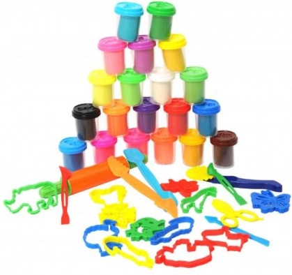• 20 bægre modellervoks i forskellige farver til uendelig skabelse