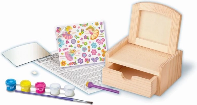 Oplev glæden ved at skabe med dette fantastiske kosmetiske smykkeskrin. Dette sæt giver dig mulighed for at male og dekorere dit eget skrin til små skatte, ideelt til kreative børn.
