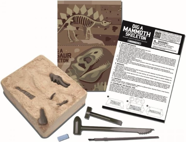 Dette interaktive udgravningssæt forvandler dit bord til en lille palæontologisk udgravning. Med det medfølgende mejsel og pensel afslører børnene forsigtigt de enkelte knogler og samler derefter en detaljeret model af et mammut-skelet. Sjov kombineres med læring, og resultatet er et imponerende udstillingsstykke til børneværelset.