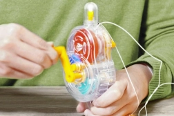 Drej på svinget og producér elektricitet med egne kræfter. Den gennemsigtige krop viser gearenes arbejde i realtid.