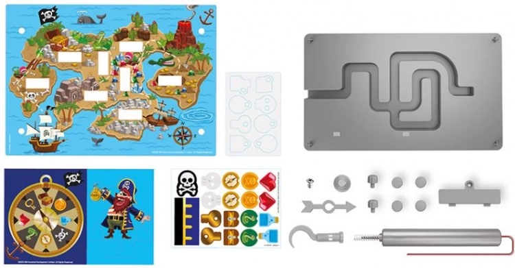 Byg din egen piratudfordring og test din fingerfærdighed. Med den elektriske piratkrog vil du “grave” efter skatte – men pas på, hvis du rører, vil spillet summe! En fremragende færdigheds- og reaktionsleg for børn, som udvikler finmotorik og tålmodighed.