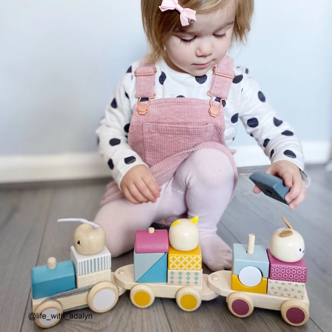 Toget underholder børn både som træklegetøj og som stabel-/puttelegetøj og puslespil. Forskellige kombinationer af klodser støtter fantasi, tålmodighed og koordination.