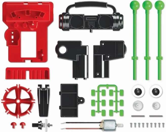 Sættet indeholder farverige plastikdele og grønne stænger, som samles til en robot, der kan spille på trommer. Samlingsprocessen fremmer logisk tænkning og manuel dygtighed, hvilket er en fremragende måde at kombinere sjov med læring.