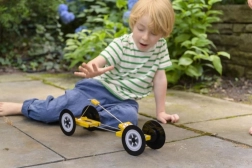 Takket være det unikke mekaniske design stimulerer bilen fysisk aktivitet og udvikling af motoriske færdigheder.