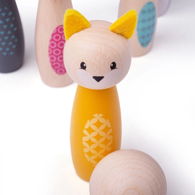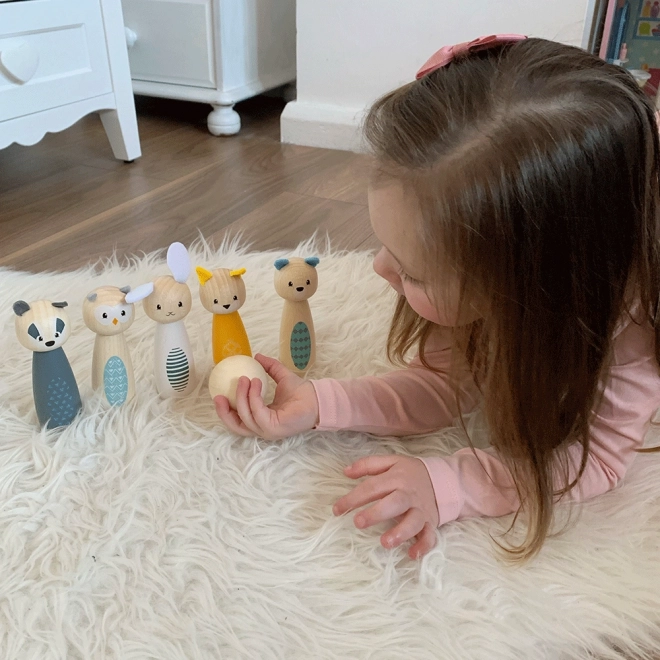 Giv børnene glæde med et stilfuldt keglesæt med søde dyr – ugle, grævling, hjort, kat, bjørn og kanin. De farverige figurer af kvalitets FSC-certificeret træ er glatte, behagelige at røre ved og modstandsdygtige over for daglig leg. Sættet egner sig til leg derhjemme på tæppe eller glat gulv.