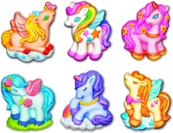 Lav og mal glitrende gipsmagneter til køleskabet eller brocher i form af 6 søde enhjørninge. Ideel til at udvikle børns kreativitet.
