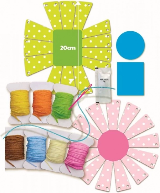 Sættet indeholder alt, hvad der er nødvendigt for at lave flere kurve, inklusive farvede garnnøgler til vævning, en plastiknål og kartonbaser. Børn kan have det sjovt med at skabe forskellige former og lære nye væveteknikker. Det er også en fremragende gave til at fremme kreativ kunst blandt unge skabere.