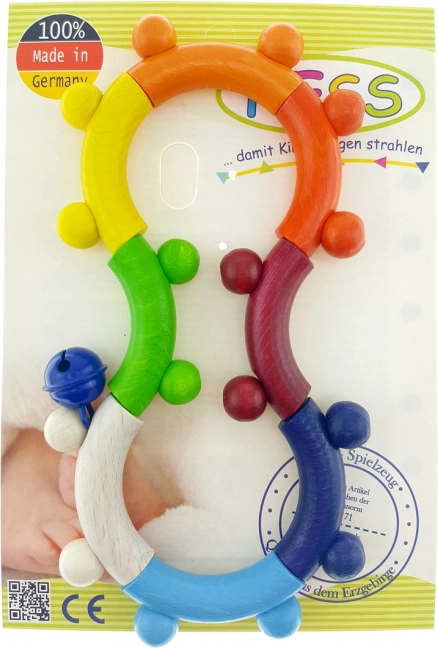 Denne kvalitetslegetøj i træ er designet til de mindste fra fødslen. Takket være den behagelige form og overflader stimulerer den naturligt grebet, træner hånd–øje-koordination og udvikler finmotorikken. De visuelt tiltalende farver og raslende elementer inviterer til opdagelse og leg.