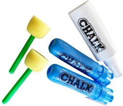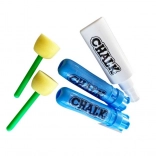 Sættet indeholder 10 kridt, 2 holdere, bogstavskabeloner, 2 svampe og en sprayflaske med vand. Alt hvad du behøver til sjov og kreativ tegning.