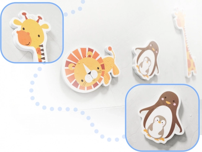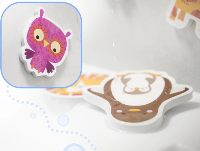 Oplev badets magi med farverige skumdyr, som børn nemt kan gribe og sætte fast på våde fliser og badekarrets sider. Delene er bløde, holdbare og sikre for små hænder – uden behov for lim, vand er nok.