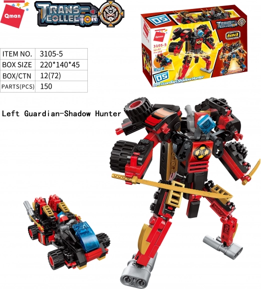 Bring spænding hjem med Qman Guardian of Star's Core Skyggevogteren Hunter 2-i-1. Dette byggesæt kommer med 150 dele, som gør det muligt at skabe forskellige versioner af robotten. Ved at fuldende serien kan du bygge endnu større og mere sammenhængende modeller, hvilket giver timevis af underholdning for både unge byggere og robotentusiaster.
