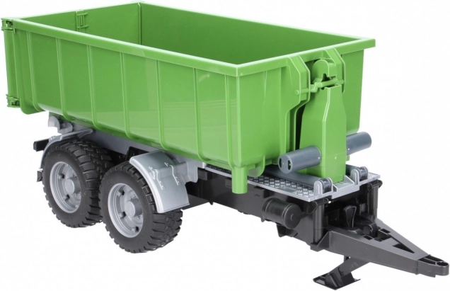 Denne realistiske BRUDER-trailer i grøn-sort udførelse udvider enhver traktor med en alsidig container. Takket være tipmekanismen og den åbnbarE bagklap klarer den nem aflæsning af lasten, og containeren kan desuden tages af chassiset og bruges separat.