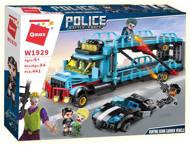 Træd ind i politiets verden med det detaljerede Qman Police Battle Force byggesæt. Tyvenes to-etagers lastbil er klar til flugt, men din enhed i den hurtige vogn er et skridt foran. Med 441 dele får du både byggeglæde og leg med masser af muligheder for ombygninger og scenarier.