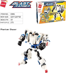 Byggesættet Qman Blast Ranger 3306 Phantom Chaser tilbyder nem transformation af robotter til køretøjer og tilbage. Det er en enestående model med stor variation.