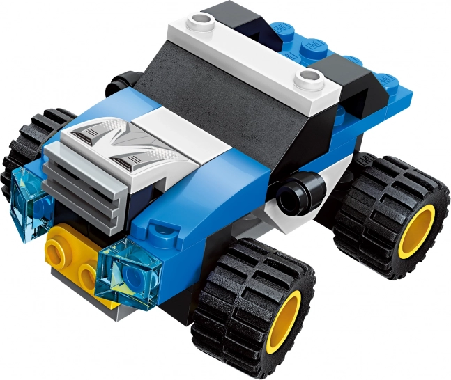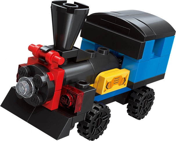 Byg en bil, offroader, racerbil, helikopter, fly, traktor, gravko og et lille tog – og opdag nye legescenarier hver dag.