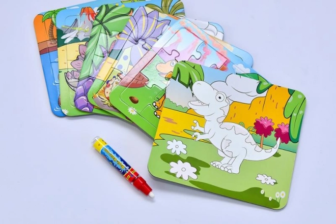 Dette innovative produkt kombinerer to fantastiske verdener: puslespil og vandmaling. Samlingen lettes af stærke kartonplader med udfræsede konturer, mens børnene kan udfolde deres kreativitet på den anden side ved vandmaling. De hvide lag forsvinder og afslører levende farver, der vil imponere enhver lille kunstner.