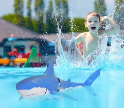 Få et utroligt legetøj, der ligner en ægte haj. MAGANA hajen er nem at styre takket være fjernbetjeningen og tilbyder endeløse muligheder for sjov. Du skal bare oplade den én gang og dyppe den i vandet, så begynder hajen at svømme. Opladningstid er kun 45 minutter, og sjov kan vare op til 30 minutter!