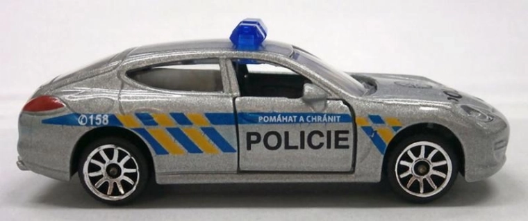 Metal politibil i tjekkisk version med friløb og åbnebare dele, længde 7,5 cm. Ideel legetøj til børn.