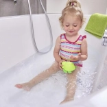 Sjov grøn badskildpadde, der flyder på vandoverfladen og sprøjter vand, så hvert bad bliver til leg. Den kompakte længde på 11 cm ligger godt i barnets hånd, og det sikre plastmateriale er ideelt til daglige vandlege.