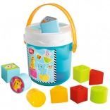 Spanden indeholder 11 farvede klodser, som børn kan putte i spanden efter formerne på låget, hvilket hjælper med at udvikle deres logiske tænkning samt hånd-øje-koordination. Takket være det kompakte design (spandens størrelse 15 cm) er den let at tage med, så den kan underholde børn overalt, hvor den kommer med.