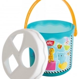 Et legende spand med farvede klodser hjælper børn med at genkende former og farver. Støtter udviklingen af finmotorik og sikrer sjove læringsstunder.