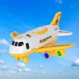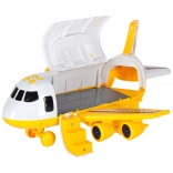 Stort transportfly til børn, som ombord kan fragte tre byggemaskiner og et sæt trafikskilte. Har åbningsbar rampe, sideadgang, LED-lyseffekter og realistiske lyde styret af fire knapper. Takket være aftagelige vinger og praktisk bærehåndtag er det let at bære og opbevare.