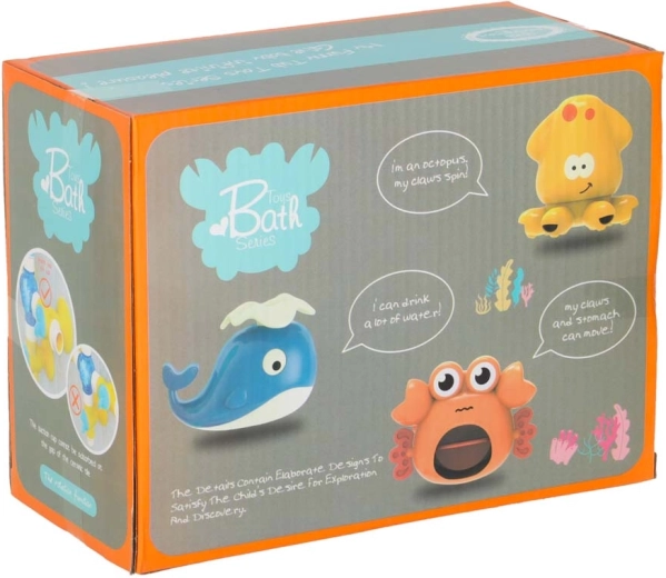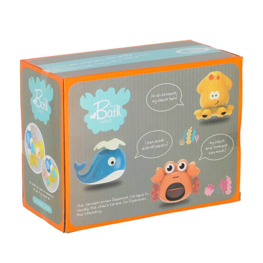 Denne farverige vandbane til badet består af tragte, rør og sjove udløb formet som en hval, krabbe og blæksprutte. Børn hælder blot vand i ovenfra og ser det løbe gennem systemet, sætte hjulene i gang og løbe ud af forskellige åbninger som en fontæne eller et vandfald. Sikre materialer og afrundede kanter er ideelle til daglig vandleg.