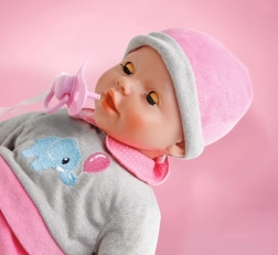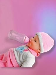 Der medfølger sutteflaske og sut, som muliggør fuld plejeleg.