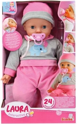 Interaktiv dukke Laura bringer leg og omsorg til børn med en blød krop, lukkende øjne og evnen til at afgive 24 børnelyde. Der medfølger sutteflaske og sut.