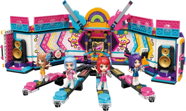 Strålende Superstar-Scene Sæt er en perfekt interaktiv oplevelse for børn, der elsker musik og kreativ leg. Dette farverige byggesæt i plast indeholder 984 klodser og 4 figurer, som inspirerer børn til at skabe deres egne musikscener.