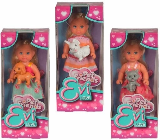 Dukken Evi Love kommer med et af tre kæledyr, som giver forskellige legescenarier.