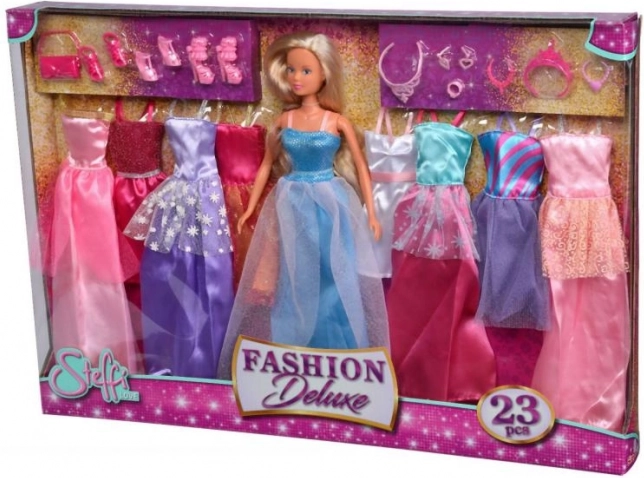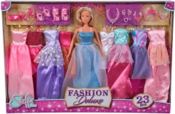 Steffi Fashion Deluxe er den perfekte gave til små stylister. Takket være den farverige kollektion af kjoler og modetilbehør kan børn nemt kombinere outfits, lave deres egne modeshows og udvikle deres fantasi. Den høje kvalitet og fine detaljer giver dukken et elegant udtryk.