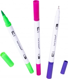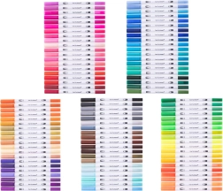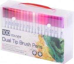 Oplev glæden ved at skabe med et sæt på 100 dobbelttippede tuscher, som tilbyder et komplet farvespektrum til hand lettering, skitsering, bullet journal, fremhævning og skoleprojekter. Hver marker kombinerer en præcis liner på 0,4 mm til konturer og tekst med en bredere spids på 1–2 mm til hurtig farvelægning.
