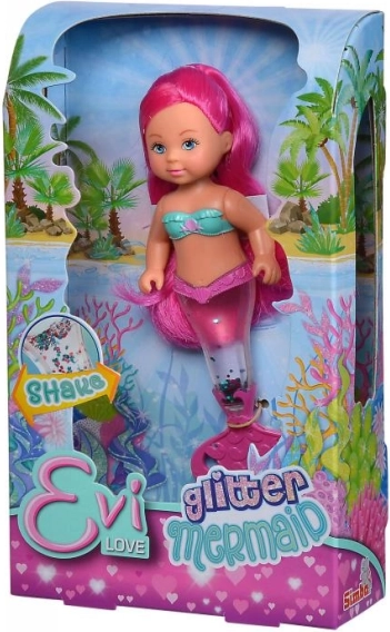 Oplev den magiske undervandsverden med Evi Love som havfrue. Hendes hale er fyldt med glimmer, som hvirvler smukt rundt ved ryst og skaber en strålende effekt. Takket være den kompakte højde på 14 cm er dukken let at holde selv for mindre børn og perfekt at tage med på farten.