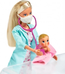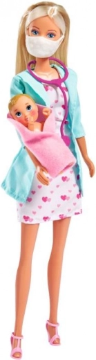 Steffi er klædt i hvid-rosa lægetøj med en blå frakke og bærer en beskyttelsesmaske. Interaktiv leg med denne smukke dukke udvikler empati og styrker evnen til at pleje andre. Perfekt gave til børn, der ønsker at blive læger!