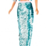 Dukken har en speciel hale lavet af pailletter, der skifter farve, hvilket tilfører et magisk præg til enhver leg.