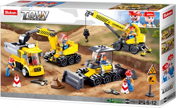 Sluban Byggeplads indeholder alle nødvendige elementer til at skabe et fuldt funktionelt byggeområde med 465 dele.