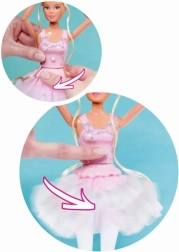 Dukken Lalka Steffi Love – dansende ballerina bringer en elegant balletoplevelse til børneværelset. En stilfuld top med glitrende detaljer og en lyserød tutunederdel skaber et fortryllende look, mens knappen formet som en rose aktiverer rotationen af skørtet for en ægte optrædelseseffekt.