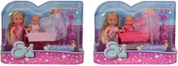 Dukke Evi Love i et sødt sæt med baby og vugge er ideel til små plejere. Med dette legetøj kan børn udvikle deres kreative evner og fantasi. Begge dukker, klædt i smukt lyserødt tøj, giver timevis af sjov.