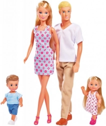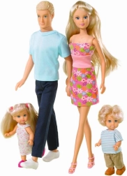 Steffi familiesæt med dukker er perfekt til udvikling af børns kreativitet og fortælleevner. Sættet indeholder fire dukker: Steffi, Kevin og deres børn Timmy og Evi, alle klædt i casual elegance. Dukkerne er i højderne 30 cm, 29 cm, 12 cm og 12 cm.