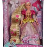 Opdag den fortryllende dukke Steffi Rapunzel, som du kan kæmme uendeligt. Denne dukke i selskabskjole og med en glitrende krone tilbyder fantastiske muligheder for hårostyling.