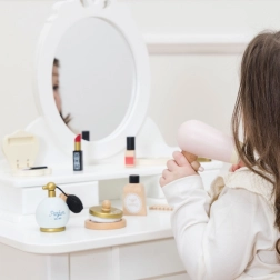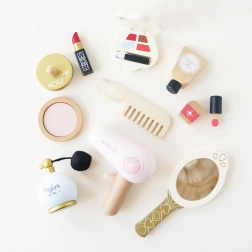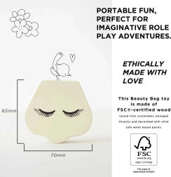 Denne smukke sæt fra Honeybake-kollektionen af LE TOY VAN giver børn en autentisk oplevelse af makeup og hårstyling. Den tekstile taske i naturlig bomuld rummer trætilbehør med afrundede kanter, lakeret med giftfrie vandbaserede farver. Ideel til små makeupartister, der vil skabe trygt og fantasifuldt.