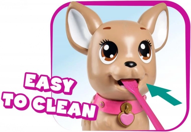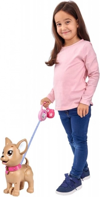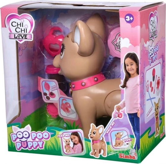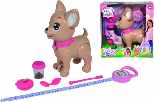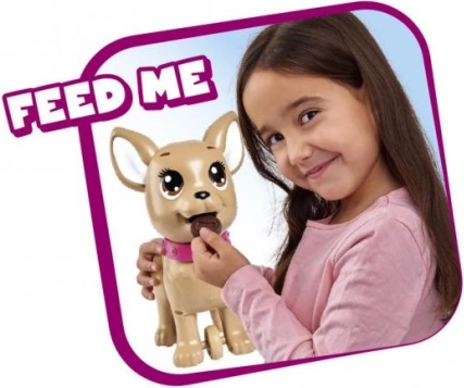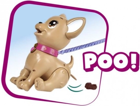 Den interaktive chihuahua Poo Poo fra CHI CHI LOVE giver børn en realistisk og samtidig sikker leg med at passe et kæledyr. Lav en snack af modellervoks, fodr hunden og gå en tur – ved et let tryk på linen bøjer hunden bagbenene og laver en bunke, som let kan samles op med de medfølgende poser.